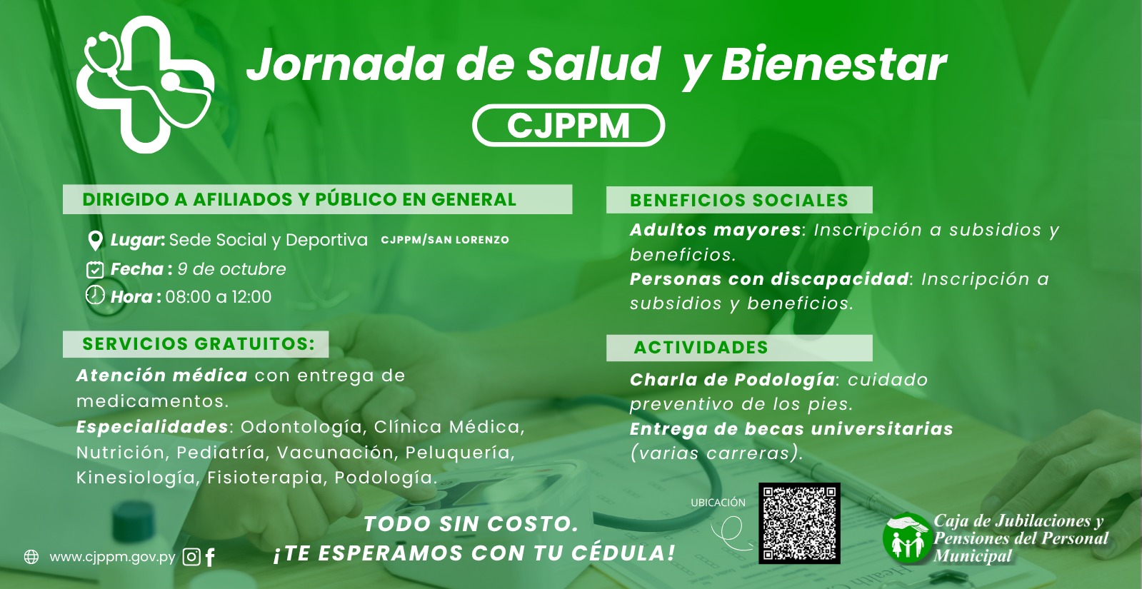 El jueves 09 de octubre se realizará una jornada de atención médica y de otros servicios, de manera totalmente gratuita y para todo público, en la Sede Social y Deportiva de la Caja Municipal, en la ciudad de San Lorenzo.