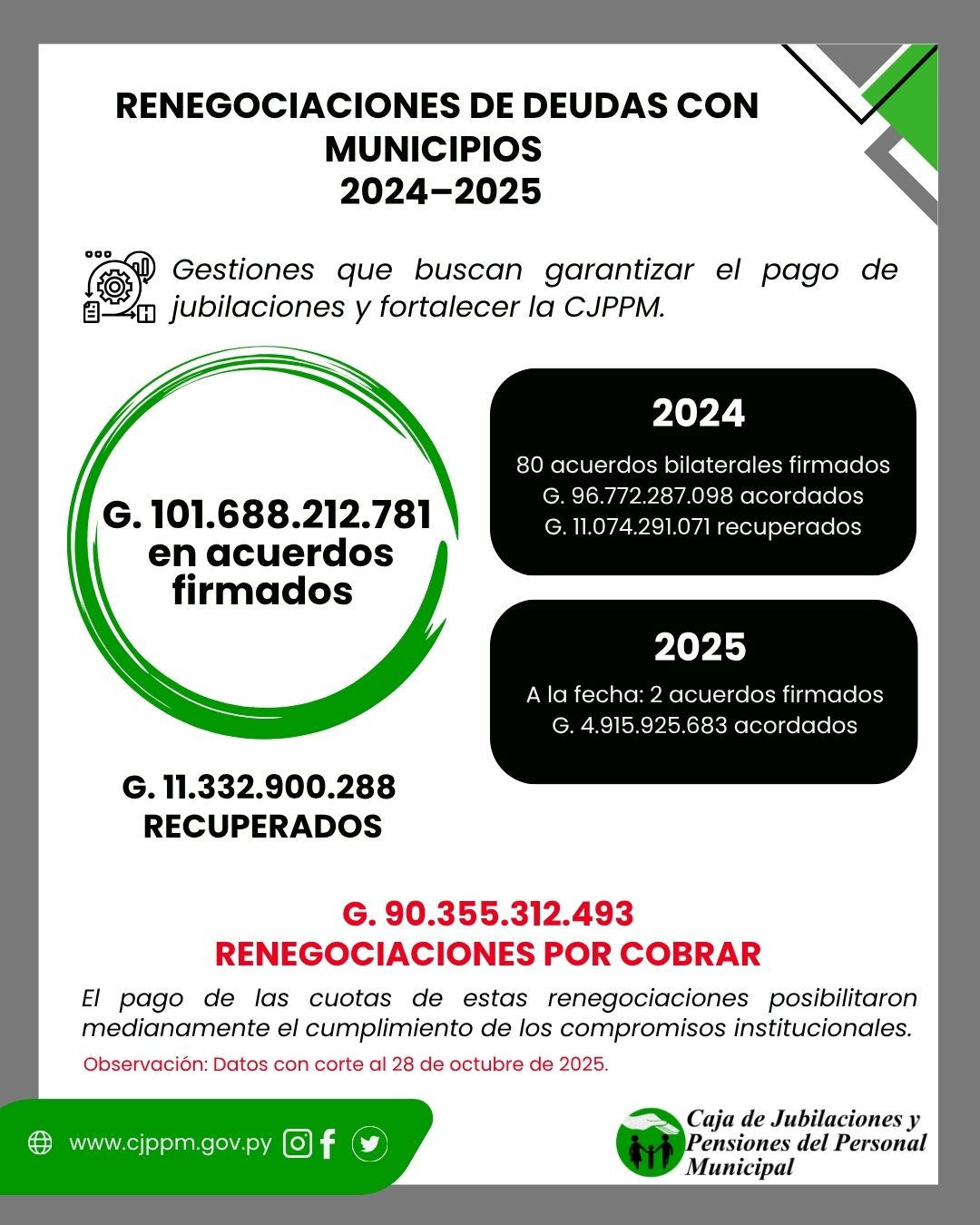 Las renegociaciones fueron por más de 101.000 millones de guaraníes, de los cuales ya fueron cobrados más de 11.000 millones de guaraníes.